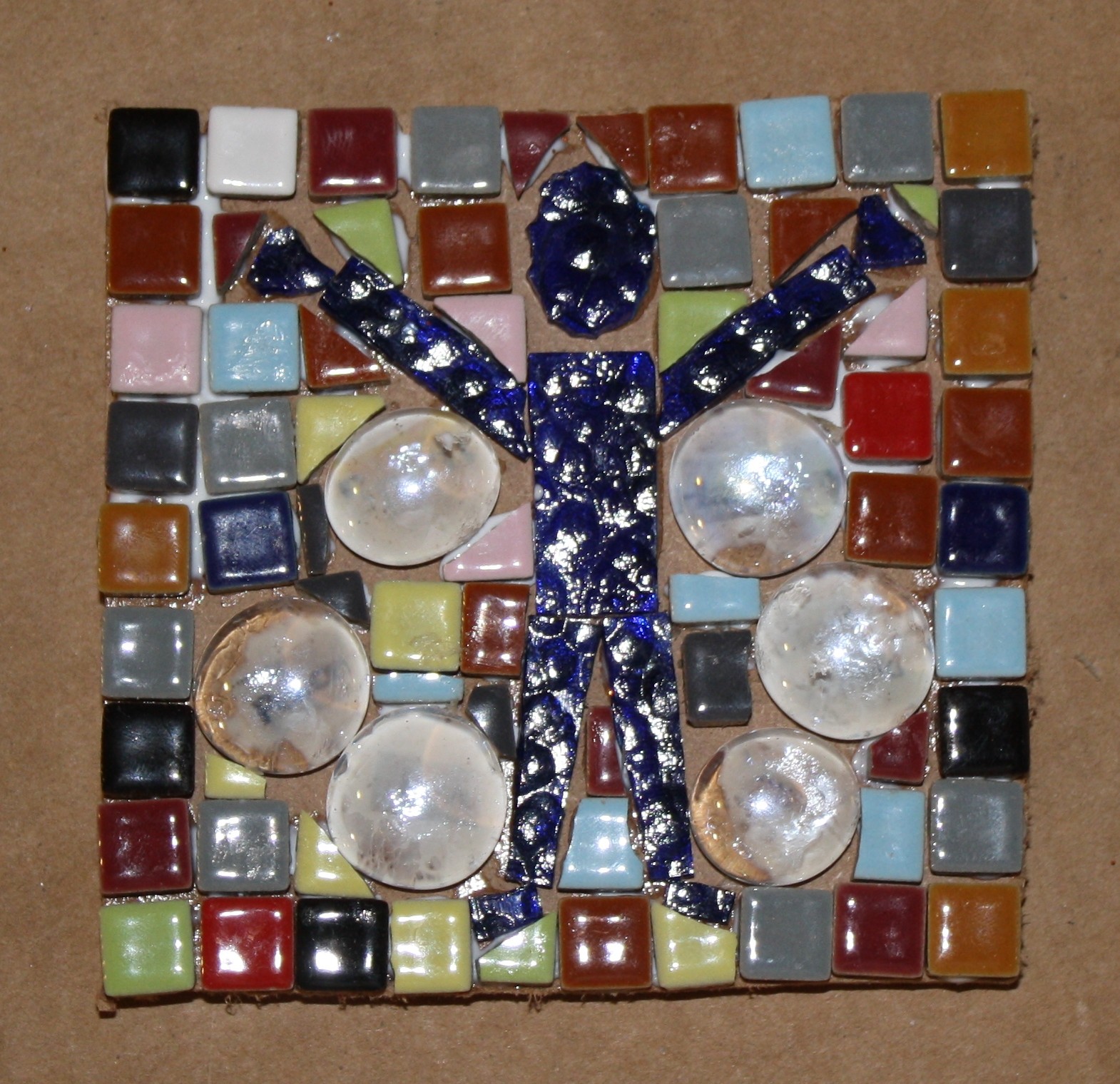 Tonight I was telling someone about my mosaic project and blog and she said, “Hallelujah!”, and suggested putting words on the mosaic. I don’t usually use words in my artwork but I immediately saw a person with his arms up int he air with words around him. So guess what I created…