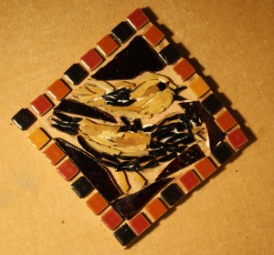 I started out thinking I was going to do a mosaic of a sweet little bird. For some reason I started playing with borders and that changed my plan. I had to create birds that fit in the border and then I had to select colors to go with the colors in the border. I like the border but I’m not too sure about the birds. It’s so interesting how a plan can change so easily.