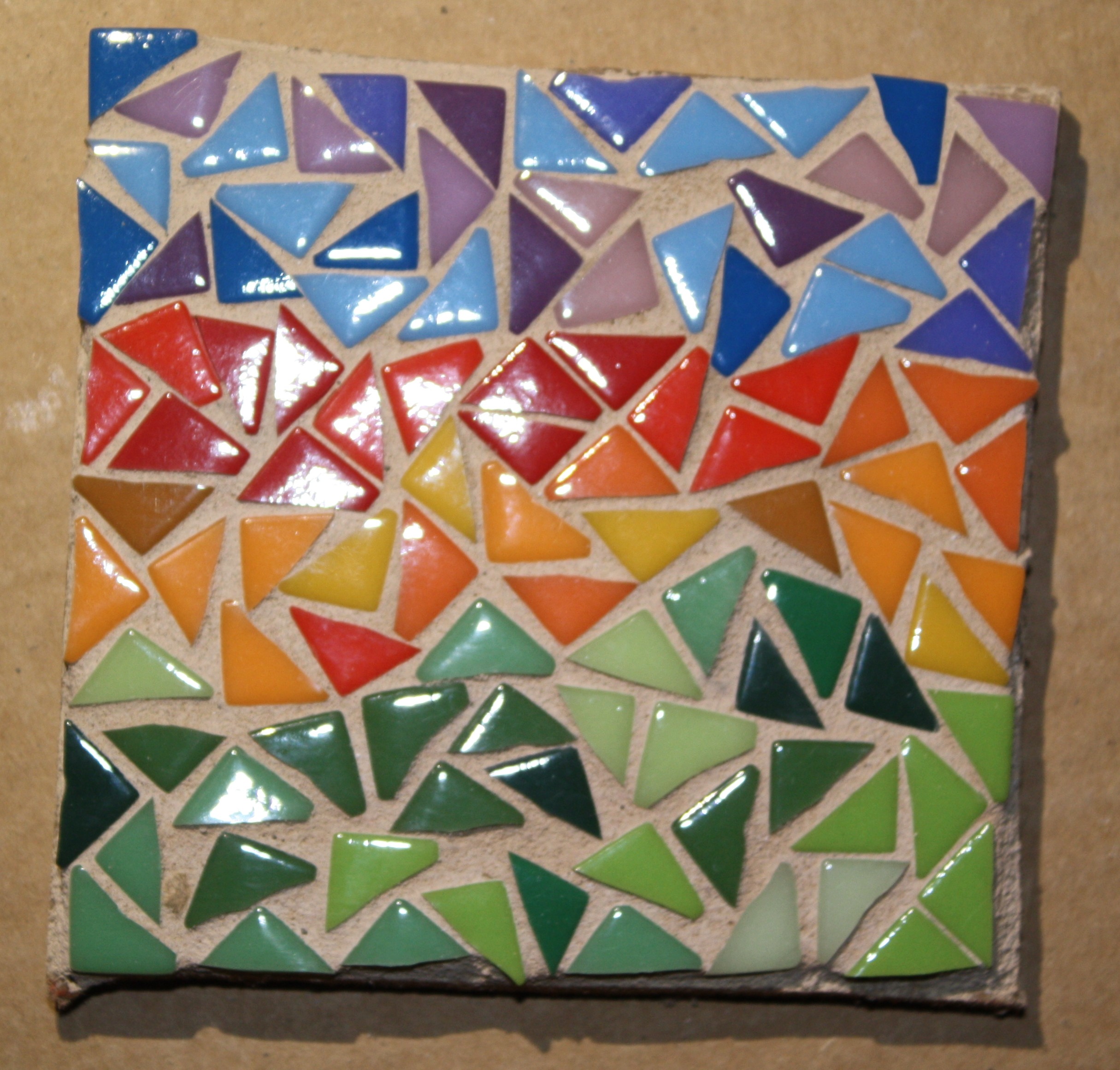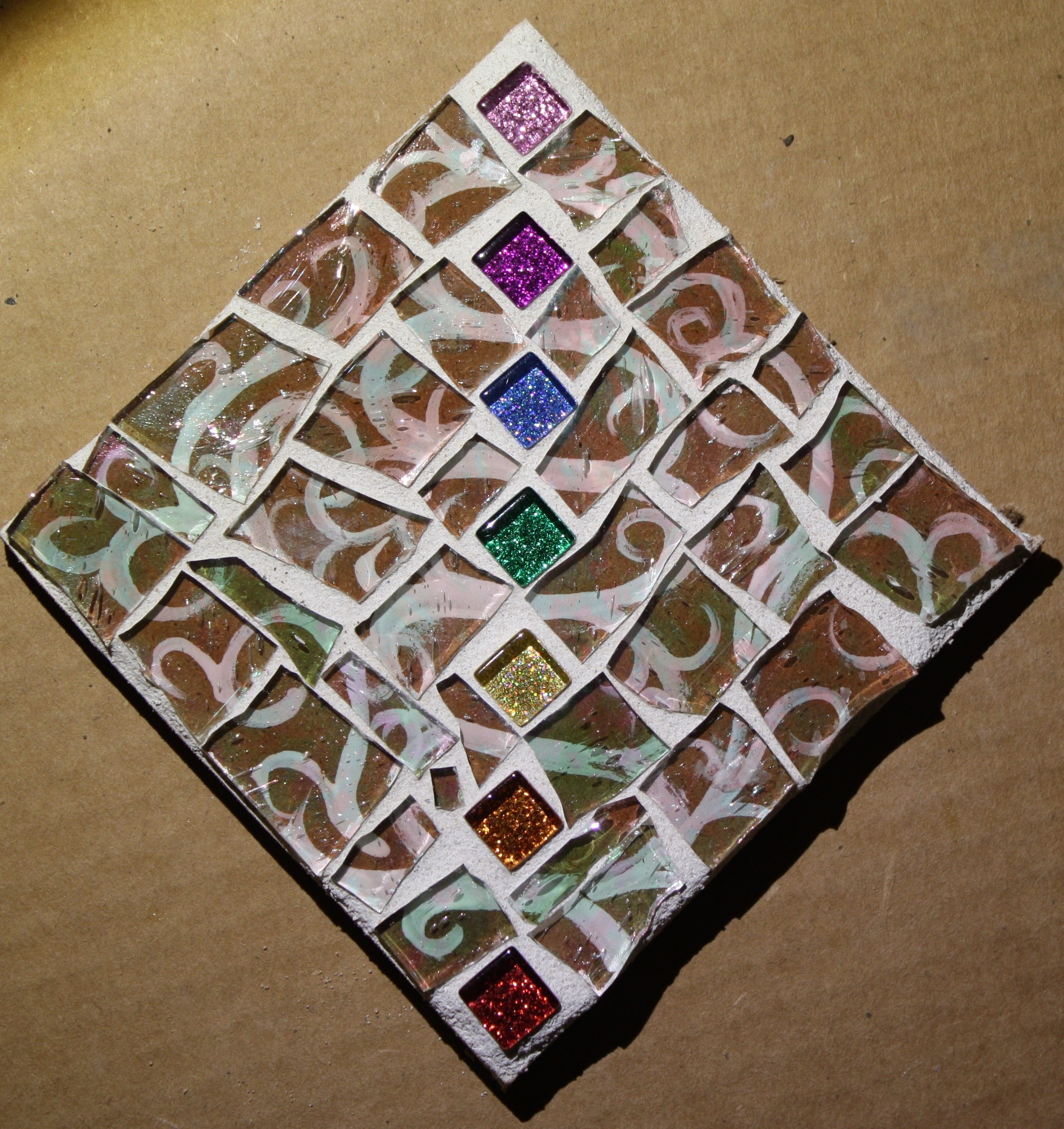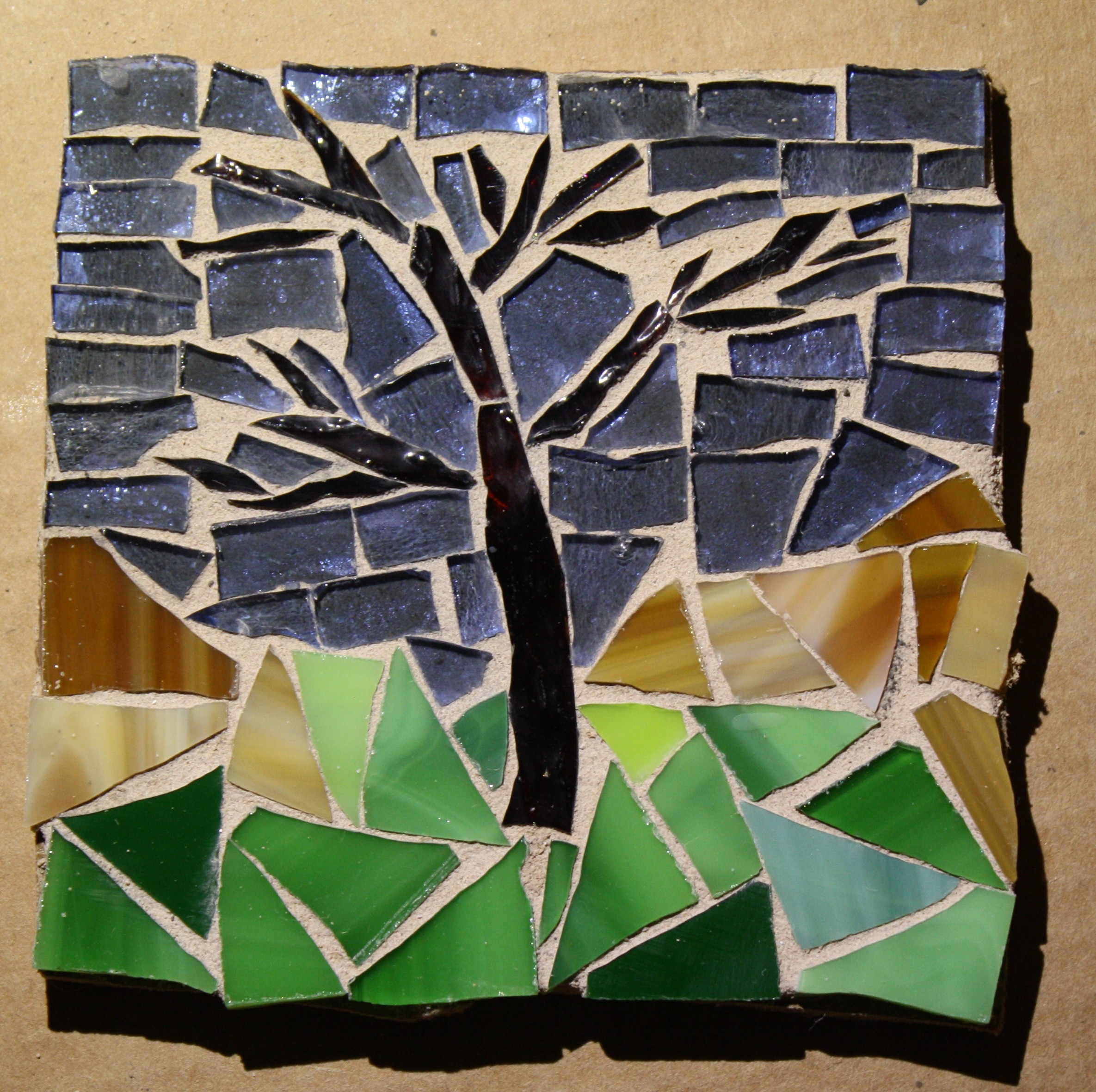 I felt anxious after the storm and had a hard time creating mosaics for a few days. I knew I couldn’t stop the project, though. I created a couple of abstract designs that showed my impression of what was going on in nature. Using art to express my feelings is always helpful. Sometimes it helps to clarify what I’m thinking about. I recommend doing a drawing or painting or anything creative when you feel out of sorts. It helps sort out what you’re feeling, it’s relaxing and it’s a good diversion.