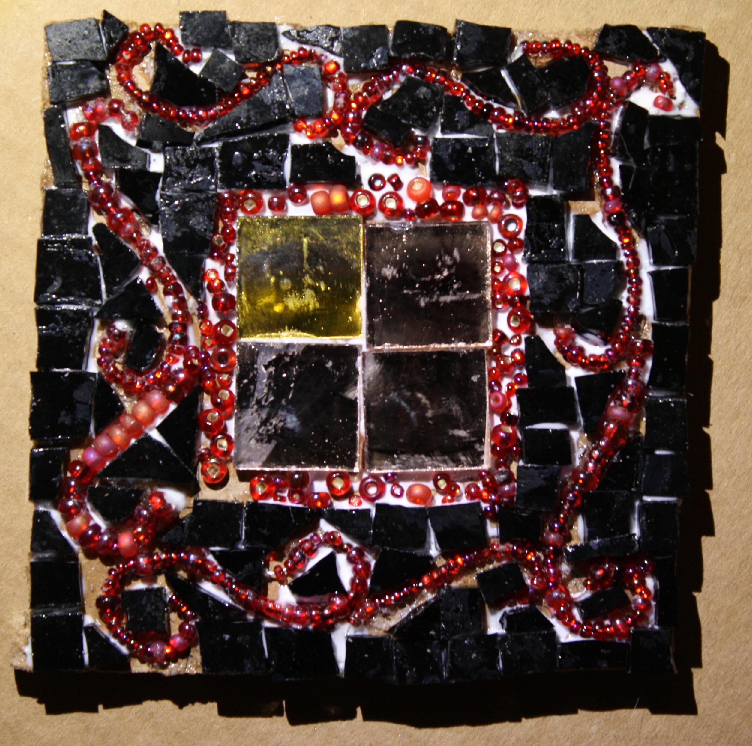 November 12, 2012November 20, 2012judyacohenLeave a Comment on Day 106 – Border Day 106 – Border Tonight I decided to make a border, then I decided to use beads. It wasn’t as easy as I expected it to be. Once I added the mirror in the middle I liked it better. I think it looks like a window now. Share this: Click to share on X (Opens in new window) X Click to share on Facebook (Opens in new window) Facebook Click to email a link to a friend (Opens in new window) Email Click to share on Pinterest (Opens in new window) Pinterest Like Loading... Related
