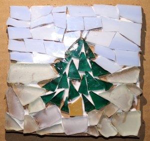 Tonight’s mosaic is a Christmas tree that has not been cut down yet. It’s living in a frosty field. I’m not sure if it wants to go to someone’s home to be decorated or if it would rather keep growing in it’s current home.