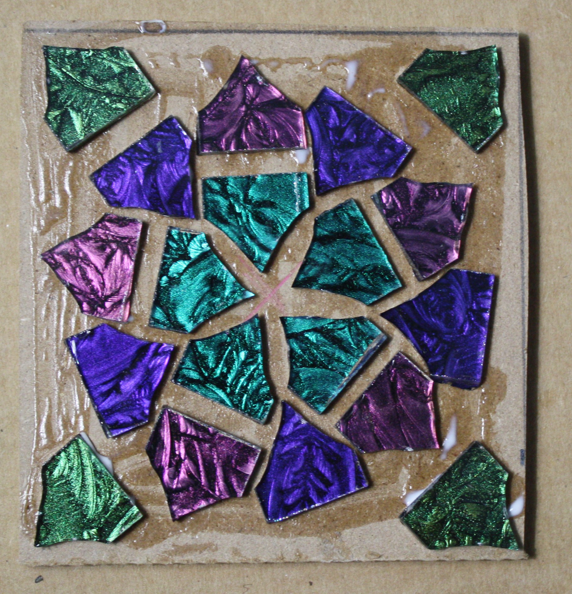 I cut the glass squares so they have five sides. Of course I couldn’t cut them so all the sides are the same length. Are they still pentagons?