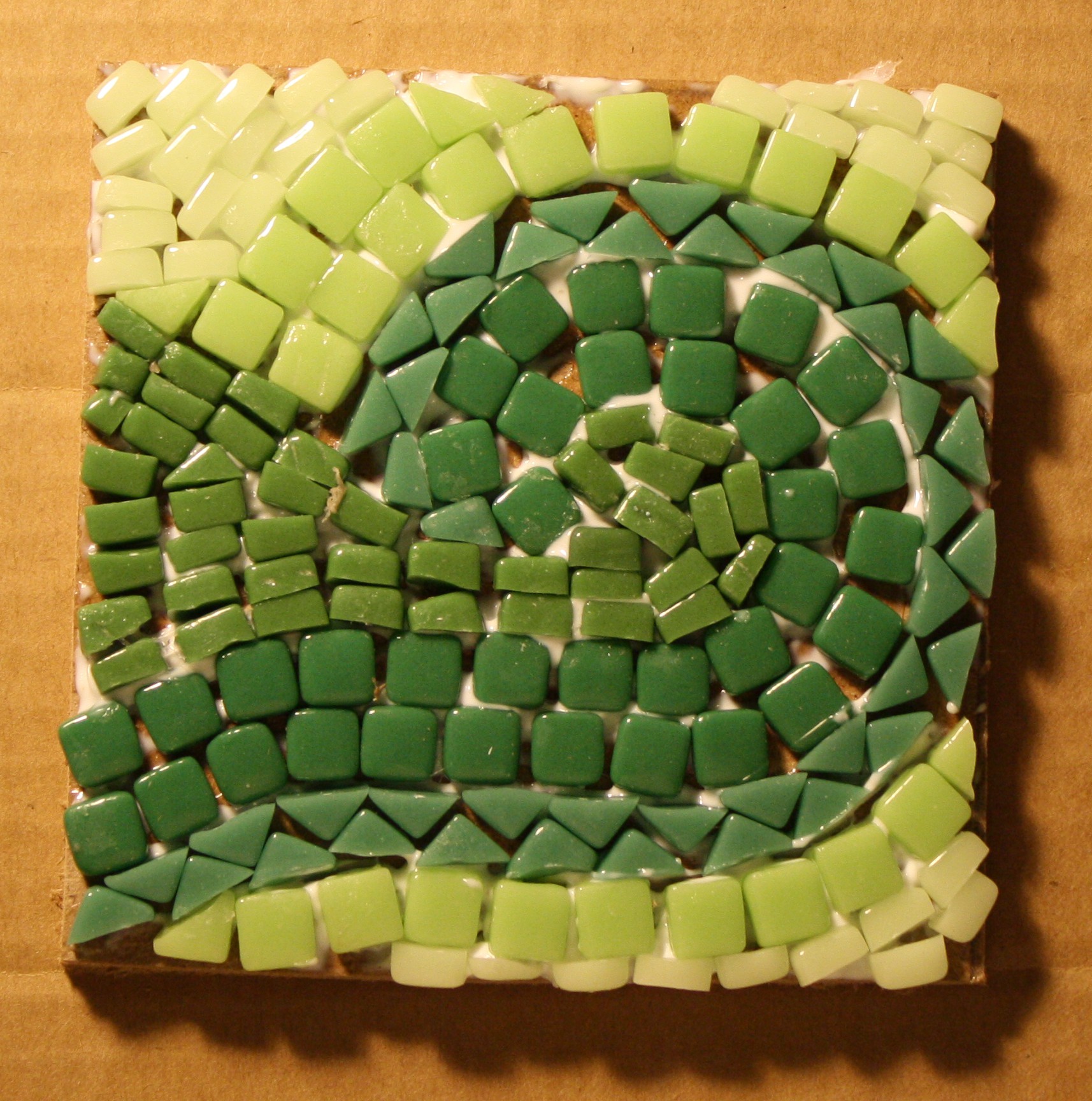 Same design but tonight in 5 shades of green. I started with the darkest in the middle and worked my way out to the lightest green.